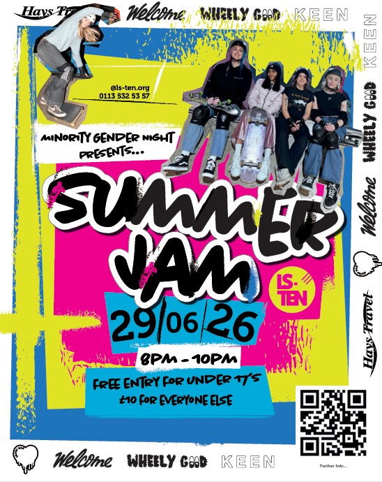 A fantastic, supportive and inclusive session held for skateboarders of any ability who aren't cisgender men. We welcome non-binary people, non-gender conforming people, genderqueer people, trans people, women and girls.